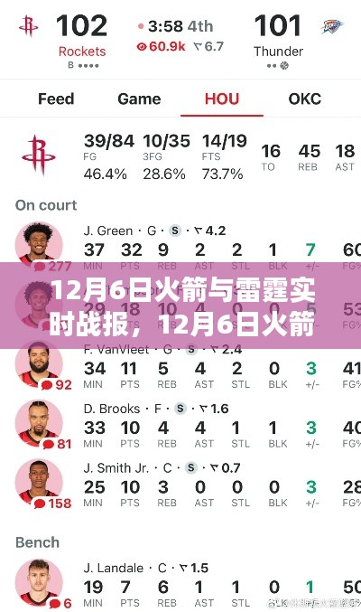 在NBA的激烈战场上,每一场比赛都充满了悬念与激情,特别是当两支实力强劲的球队遭遇时,球迷们的热情更是被点燃,12月6日,休斯敦火箭与俄克拉荷马雷霆的较量便是一场不容错过的精彩对决,本场比赛不仅关乎两队的战绩排名,更是展现了两队战术风格、球员表现的绝佳舞台,我们将为您带来这场比赛的实时战报以及焦点分析。
