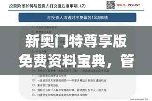 一、新奥门特免费资料大全简介 新奥门特免费资料大全是一个集信息收集、整理、分享于一体的平台,为广大用户提供各类实用资料。其中,管家婆料是平台的核心内容之一,旨在为用户提供精准、高效的信息服务。